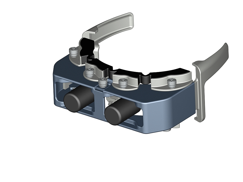 A mandibular displacement measuring device designed to adjust jaw displacement for sleep apnea patients.
