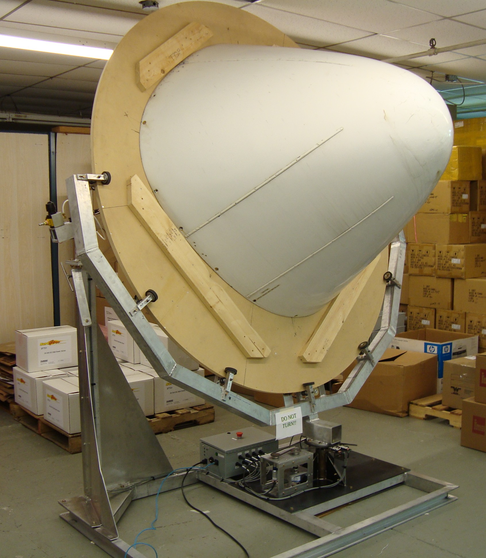 Radar Dome test unit that determines whether rebuilt airplane nose cones meet Transport Canada requirements.