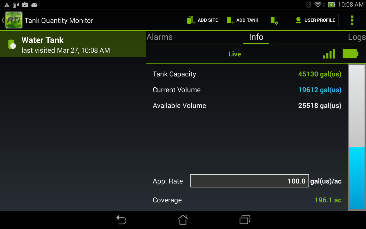 Senses the level of a liquid storage tank and reports the volume via Bluetooth LE on an App on the…